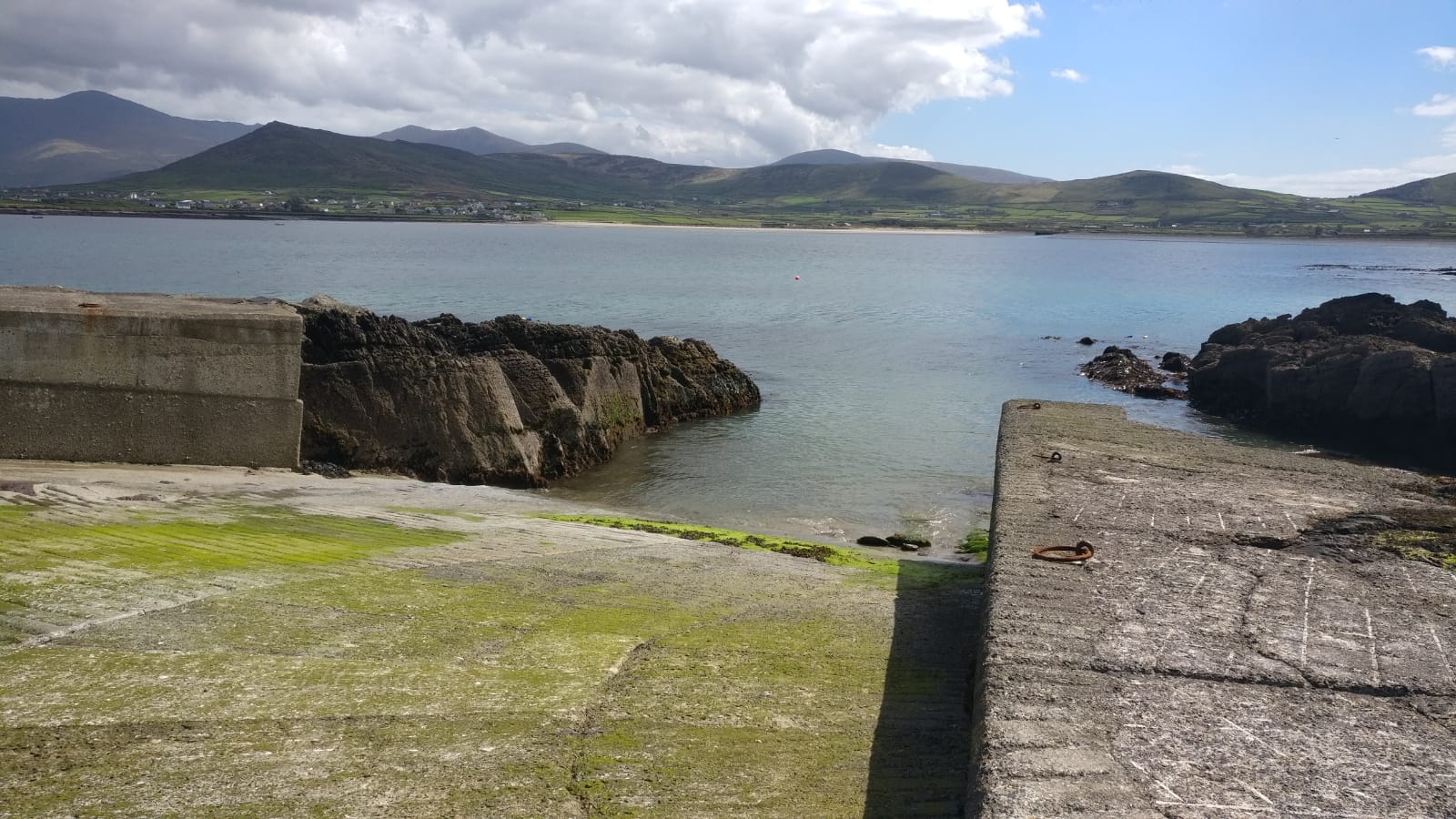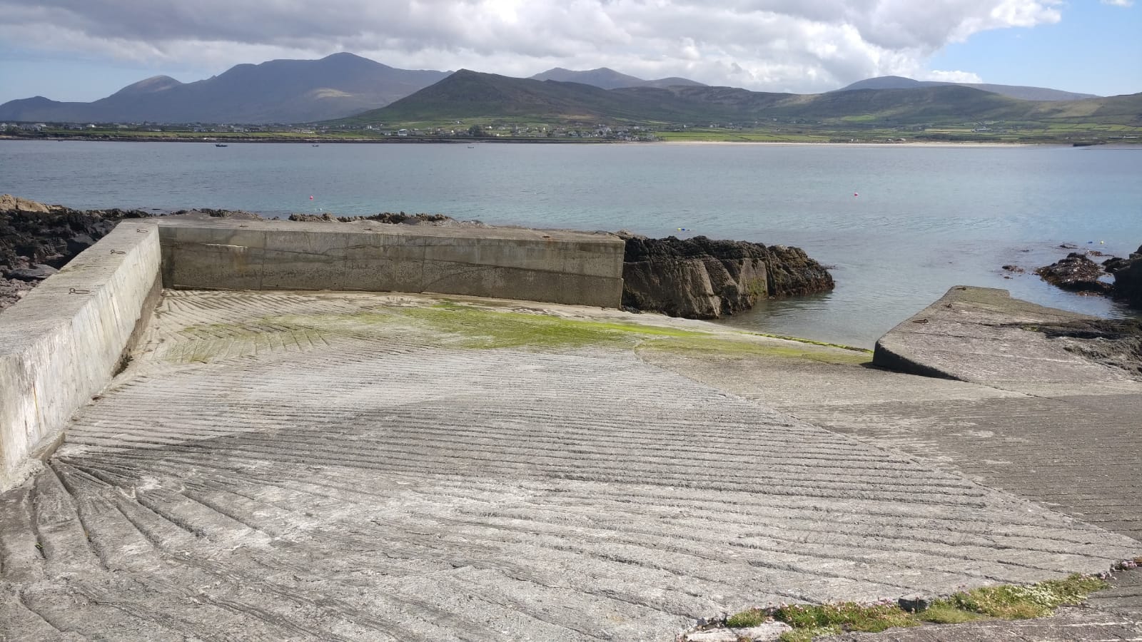 There is a slip in Ventry on the southern side. On neaps, this is usable up to an hour before low water but, owing to the construction of a wall on the end of the slip will require some involved launching and adroit positioning of the towing car at lowish water. The 2019 trip took place during a spring tide and launching 2 hours ahead of LW was just about manageable. Advisable to avoid launching here within 2.5 hrs either side of LW on springs. There were some local moorings but the boats were anchored just out from the pier overnight (2019). Kerry County Council are the official people to contact regarding moorings here, you can get the local office on 066- 915135. There was also a hefty chunk of the slip missing on the open side, extra care required to ensure jeep + trailer pass over it safely.