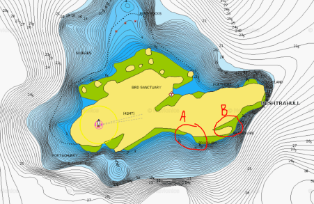 2019: We were told about a gully on the western side of the island in what looked like a horseshoe on the charts. Nobody found much more than kelp and sand on this dive. Max depth found by divers was between 15-18m but not worth doing. Could be worth doing if we got coordinates for the gully as it’s definitely a non-tidal site but otherwise don’t waste your air.