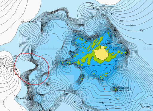 2019: We were told about a gully on the western side of the island in what looked like a horseshoe on the charts. Nobody found much more than kelp and sand on this dive. Max depth found by divers was between 15-18m but not worth doing. Could be worth doing if we got coordinates for the gully as it’s definitely a non-tidal site but otherwise don’t waste your air.